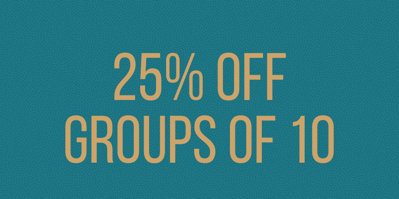 25% off tickets for groups of 10 or more to the same performance.